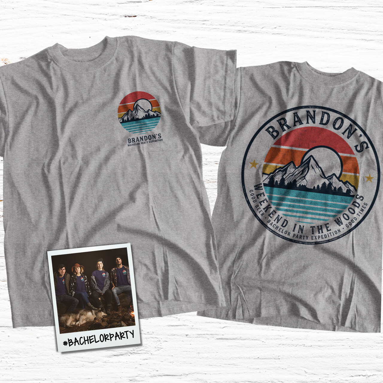 Our guy friends love a chance to party too! The top three bachelor party themes for the groom to be and his guests are the Weekend In The Woods Expedition, the Who's Your Caddy Golfing Bachelor Party, and a Bachelor Weekend Campout. The bachelor party designs can also be customized with any wording, location, date, and ink colors too!
