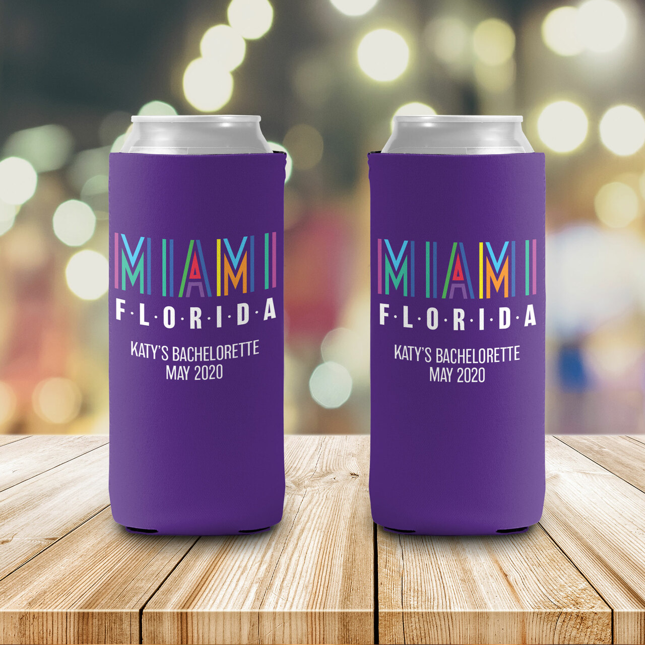 Some wedding couples choose a specific city for their individual bachelor or bachelorette party. Popular locations include a trip to Nashville, Let The Good Times Roll Vegas weekend, or party in Miami. The ladies and gents will look totally awesome in their custom designed shirts with matching beer coolies from Zoey's Attic Personalized Gifts. Prefer another city destination? No worries! We can customize our tees and drinkware for any location.