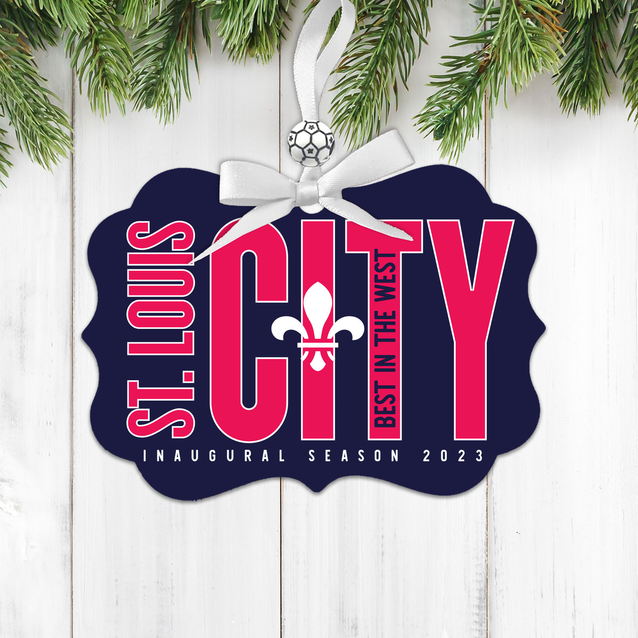 Zoey's Attic Personalized Gifts also offers its "Best In The West" St. Louis City Inaugural Season 2023 ornament. This exclusive Aluminum Benelux Shaped Ornament is a must-have keepsake for all dedicated STL City Soccer fans! This beautifully crafted rectangular ornament measures approximately 4" across and 2.75" high. On the optional flip side, you'll find the inspiring motto, "We're Just Getting Started," representing the exciting journey ahead for STL City Soccer. This ornament comes complete with a charming bow featuring a soccer bead, adding a touch of soccer spirit to your holiday decorations. Whether you hang it on your Christmas tree or display it year-round, this ornament is a fantastic way to commemorate this special season for your favorite soccer team.