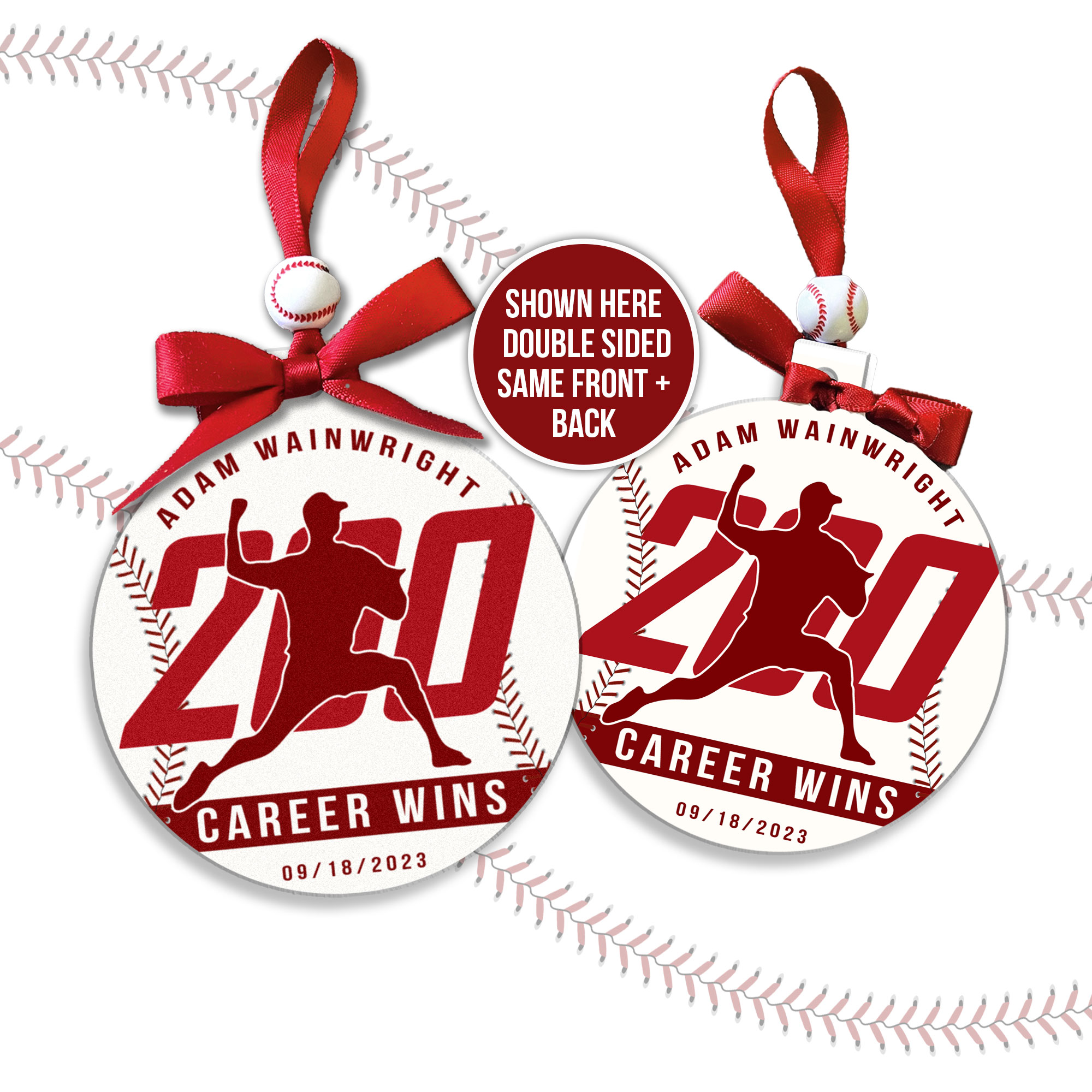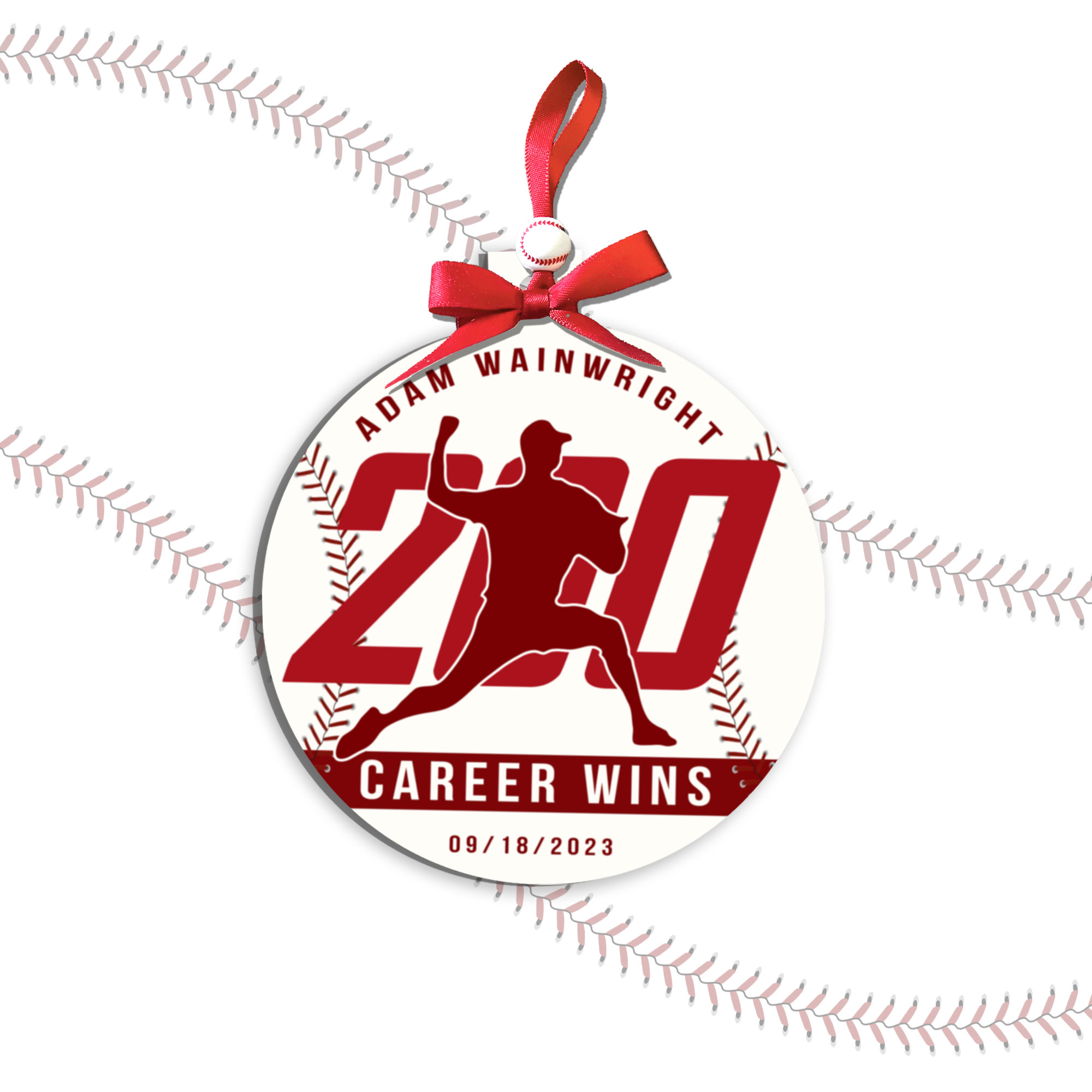 This past baseball season Cardinal pitcher extraordinaire Adam Wainwright completed his 200th league win! Every Wainwright fan will want to have Zoey's custom designed "200 Career Wins" ornament. The ornament is availble with three options: single sided with blank back, double sided with same front and back design, or front 200 Career Wins design with your custom photo on the back of the ornament.