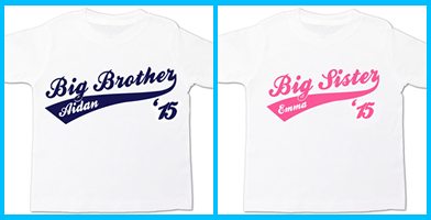 Zoey's Attic Spring Shirts and Gifts Shop also has sweet big sister and big brother shirts and siblings sets that make perfect gifts for celebrating a new baby's arrival. And if you want to make a special announcement this Spring, why not let Zoey help? Can you imagine all the fun when big brother or big sister spills the beans wearing our popular and very sporty personalized swoosh design tee?