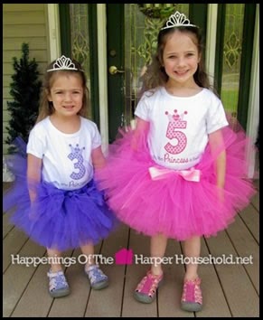 And our friend Danielle from Happenings of the Harper Household had a princess party for two of her four girls. They had birthday princess shirts that went perfectly with their oh so sweet tutus! And the tiaras totally complete the look for these beautiful birthday girls!